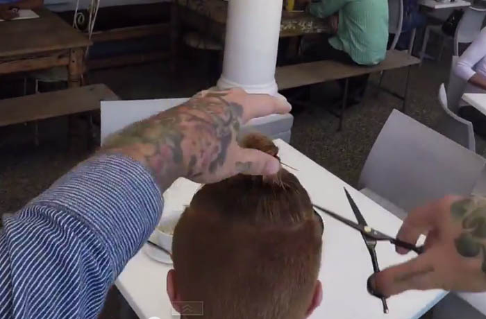 and the cutting of someone elses hair shows what exactly? If this guy seriously thinks he can tell what other people should be doing with the way he looks, he should expect some guy to come along with a go-pro and and a cheese grater to take his tattoos off with. Kinda the pot calling the kettle black, eh?