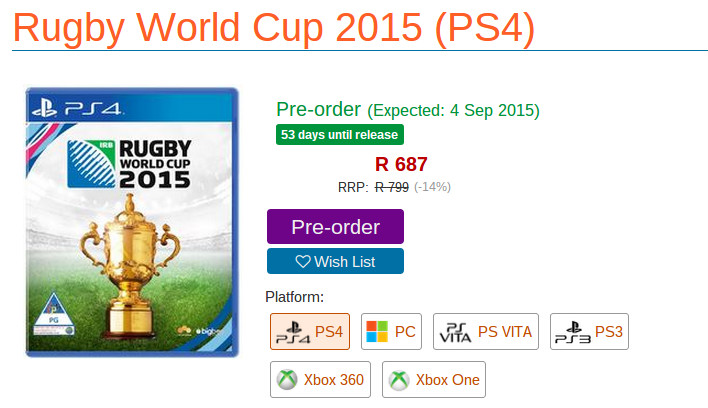 Posted on local online retailer Raru, the game is said to be launching on 4 September 2015, which would coincide with the opening of the tournament being held in England later this year.