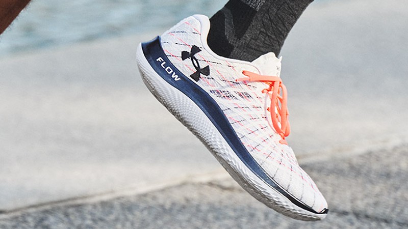 For this ultra-comfortable, super lightweight running shoe, UA Flow disrupts the design of a traditional running shoe by completely eliminating the rubber outsole. The shoe’s all-in-one cushioning system eliminates the need for a rubber outsole and gives it lighter-than-air properties. This bold move helps to reduce the weight of the shoe by as much as 86grams, making it significantly lighter than a traditional running shoe.