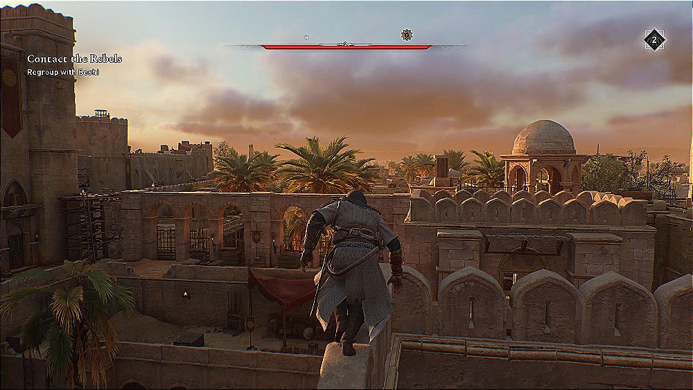 Players are far more agile than previous AC games, where some titles made you feel like a bulky warrior, Mirage really makes you feel like a cat-like thief turned pro-stabber. You can slickly slink through gaps in walls, vault over tables with ease, and scale buildings incredibly quickly, as Basim really does feel ‘in-tune’ with the environment as if he’s on a sand-laden racetrack rather than clambering around a blocky city.