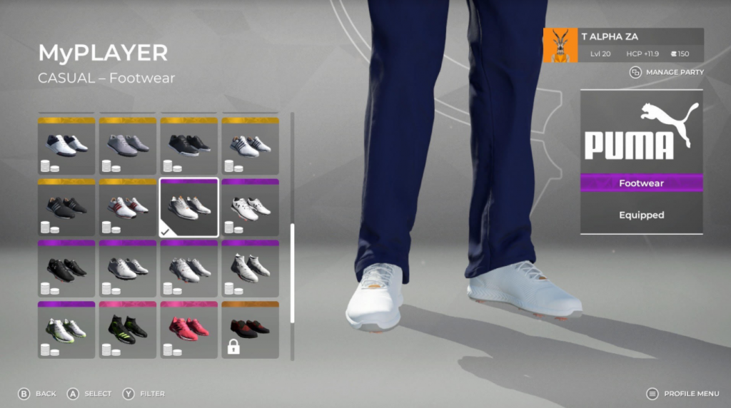 The MyPlayer feature allows you to customise your golfer’s appearance, clothing and golf clubs. As you progress through game modes, you’ll accumulate coins to spend on better gear and clothing options. We would’ve liked to see more golf equipment and clothing brands to choose from, but hopefully they get on board in future updates. We opted for Puma kicks, shirt, belt and generic cowboy hat. Because, why not?
