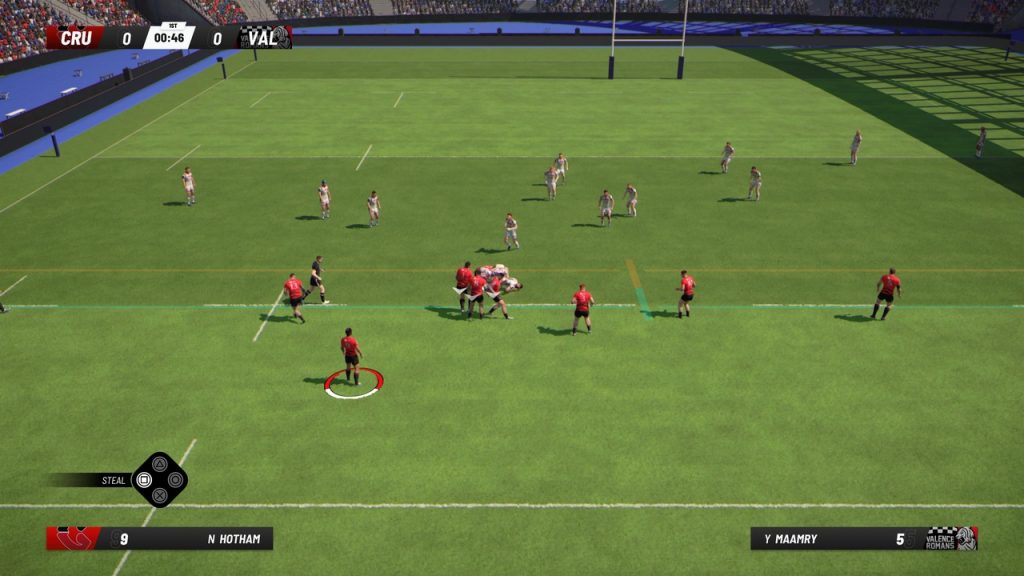 The rucking system, upon launch, barely worked but has been improved quite drastically. You can allocate players to a ruck, with the more players in, the more power you get at the breakdown. If you can beat the other team’s power, you can steal the ball or get a pushover. It still seems like a bit of a roulette whether you win or not, but trying to isolate ball carriers and then strategically deciding when to throw in counter-ruckers is key, rather than mashing the button every time.