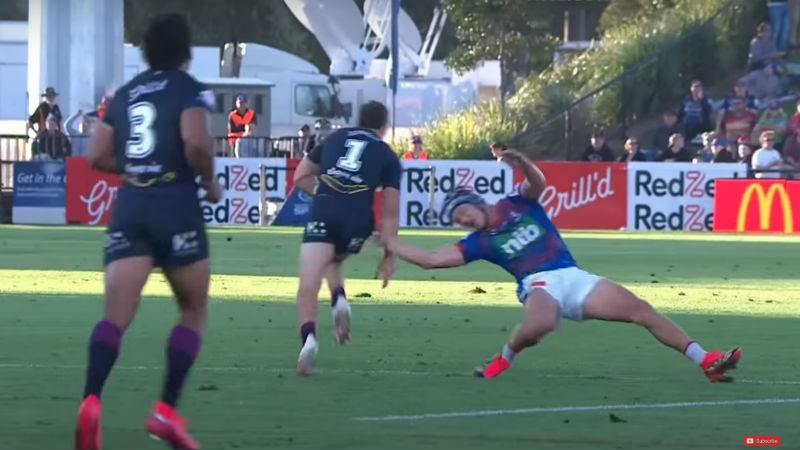 Not only was his pick-up from an attacking grubber sublime, but his sidestep and sheer speed to beat Kaylin Ponga and the rest of the Newcastle Knights’ defence was undeniably impressive.