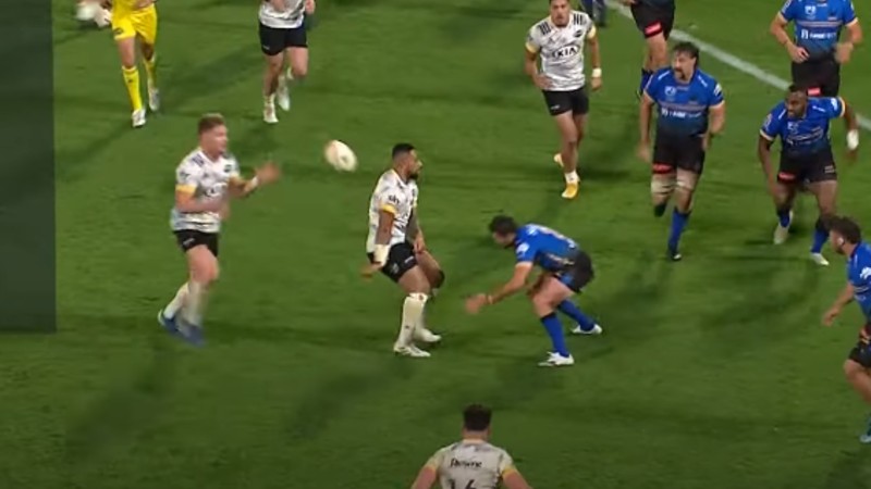 A simple yet stylish loop-play involving Billy Proctor, Ngani Laumape, Jordie Barrett, and Wes Goosen saw the backs move the ball elegantly with some no-look passing in order for Barrett to score in the corner.