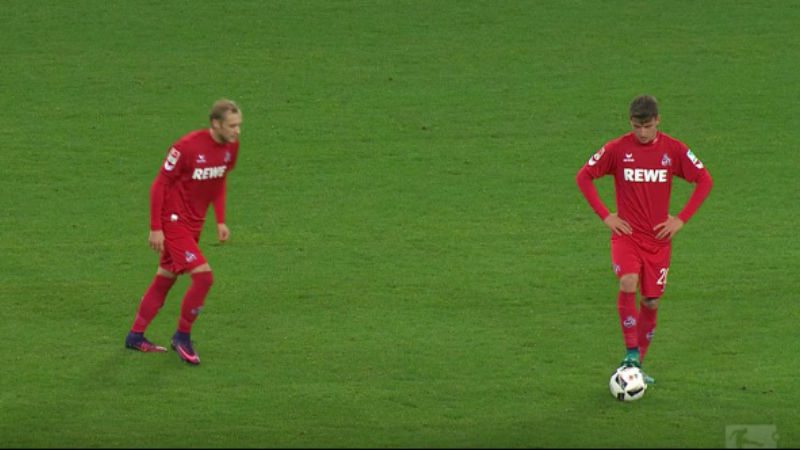 It’s stoppage time in the Rhine Derby between Borussia Mönchengladbach and 1. FC Köln with the scores locked at 1-1, when Köln get a free kick well over 30 meters from goal. Marcel Risse takes it upon himself to try his luck, and of course, he nails it.