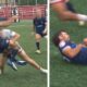 Check out this absolute bone-rattler from an Australian club game.