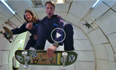 Pro skaters Tony Hawk and attempt to pull off some weightless tricks in Zero Gravity.